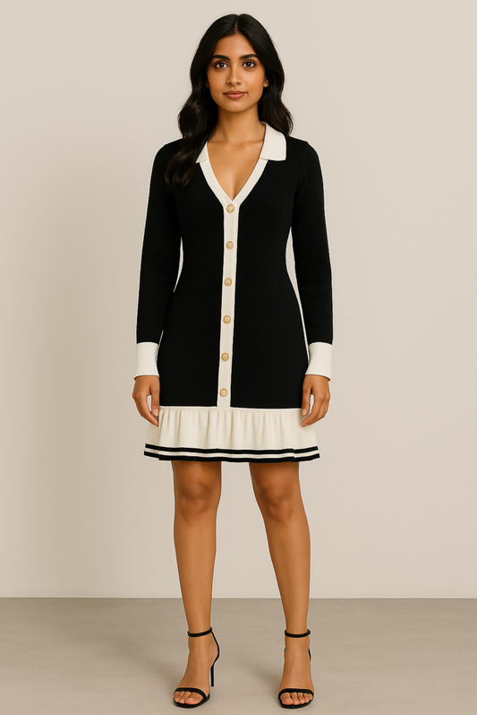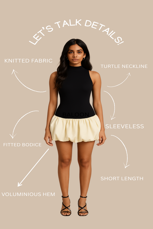 Turtleneck Drop-Waist Bubble Hem Mini Dress in Black