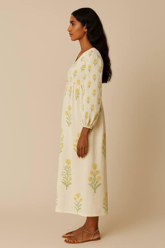 HAND-BLOCKED ORGANIC COTTON MAXI DRESS WITH POCKETS